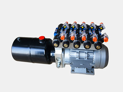 液壓動力單元的基本部件包含電機,中央油路閥塊,齒輪泵,電磁閥或手動閥及油箱。電機轉動帶動齒輪泵,將油箱內的液壓油送入中央油路閥塊,電磁閥或手動閥開啟后,液壓油從中央油路閥塊上的出油口進入油管,再進入油缸,油缸伸出。當油缸縮回時,液壓油原路返回油箱,完成一套完整的液壓動作。